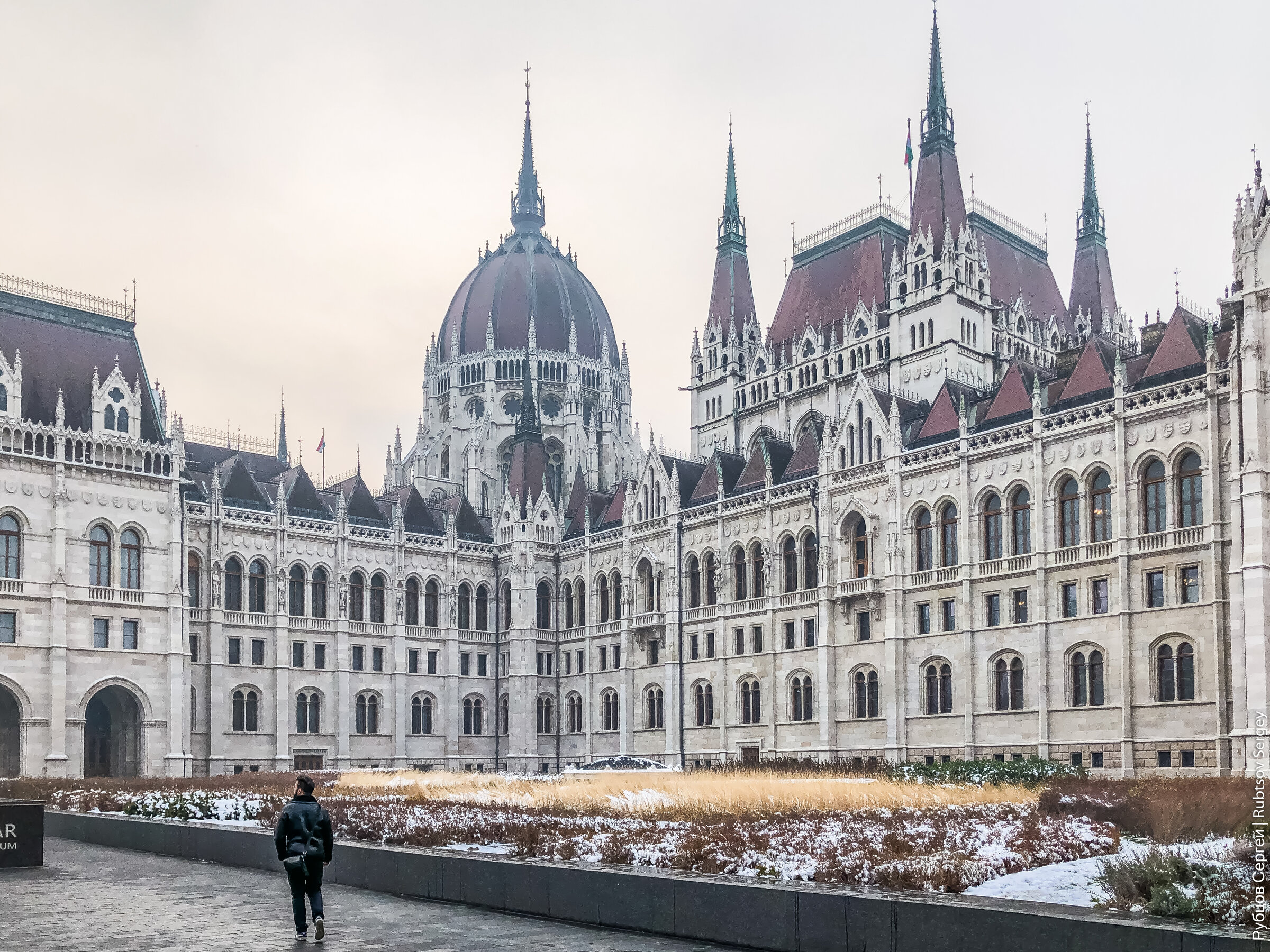 Я провел в Будапеште 3 полных дня, но эти дни оказались очень разнообразными, потому что было ощущение, что я оказался в городе в совершенно разное время года. Будапешт встретил меня снегом прохладной погода ниже нуля, весь город был затянут дымкой. Второй день стал был осенним и большую часть времени шел дождь, а температура была уже плюсовая. Последний день был весенним, светило солнце, а градусник показывал уже больше 10 градусов.