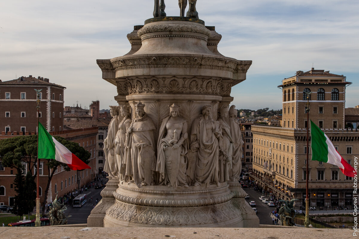 На Пьяцца Венеция (площади Венеции) располагается огромный монумент Витториано в честь первого короля объединённой Италии Виктора Эммануила II. Постройка впечатляет своими размерами: