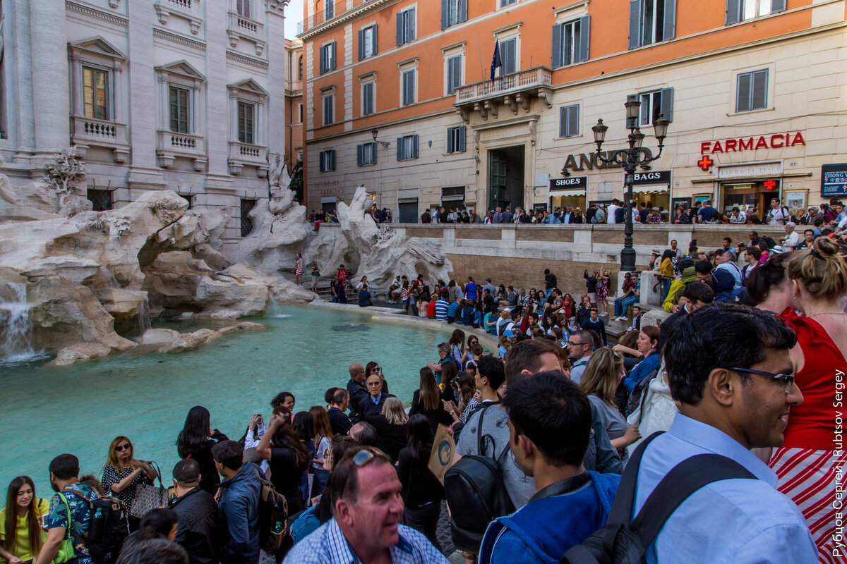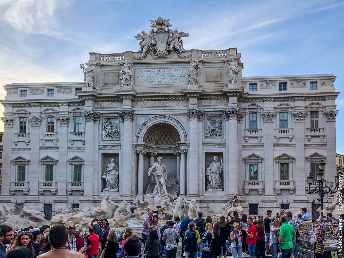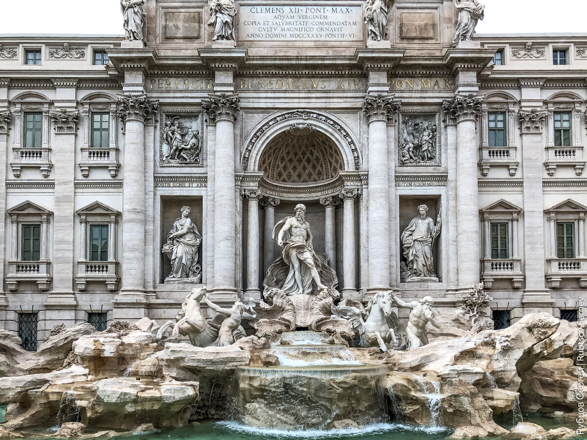 Еще одной из обязательных точек для посещения у всех туристов является знаменитый римский фонтан Треви. Я, как и многие другие, кто собирался поехать в Италию восхищался его деталями и красотой по картинкам в интернете, большинство кадров выглядят примерно так: