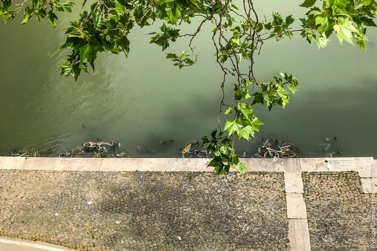 Кстати, воды Тибра просто кишат… прокатными велосипедами.