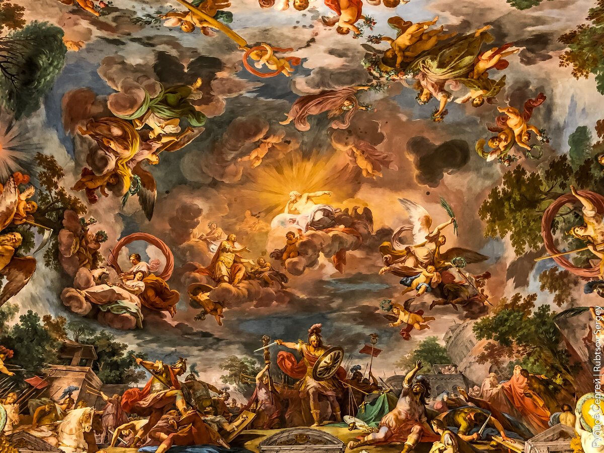 Замечу лишь одно, что Галерея Боргезе, в которой находится множество интересных и уникальных работ, гораздо приятнее для посещения, чем знаменитые Музеи Ватикана, где после 3-х часовой очереди ты наконец-то попадаешь внутрь и тебя реально уносит человекопотоком в сторону Сикстинской капеллы, но про Ватикан будет в следующий раз. Да и потолки тут тоже достойны внимания: