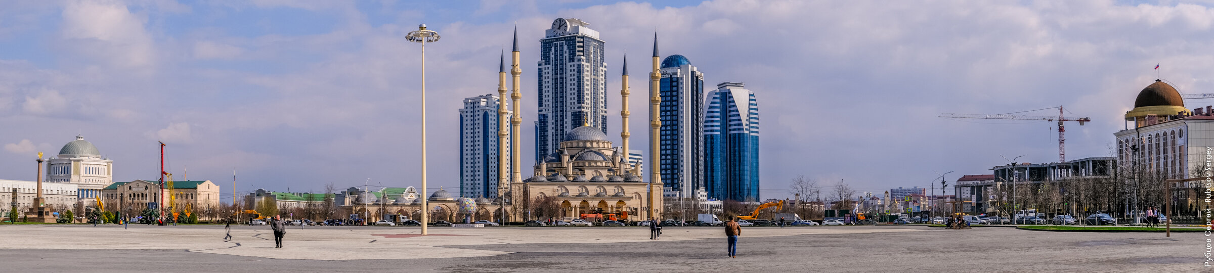 Здесь же находится и визитные карточки города — комплекс Грозный Сити и знаменитая мечеть Сердце Чечни: