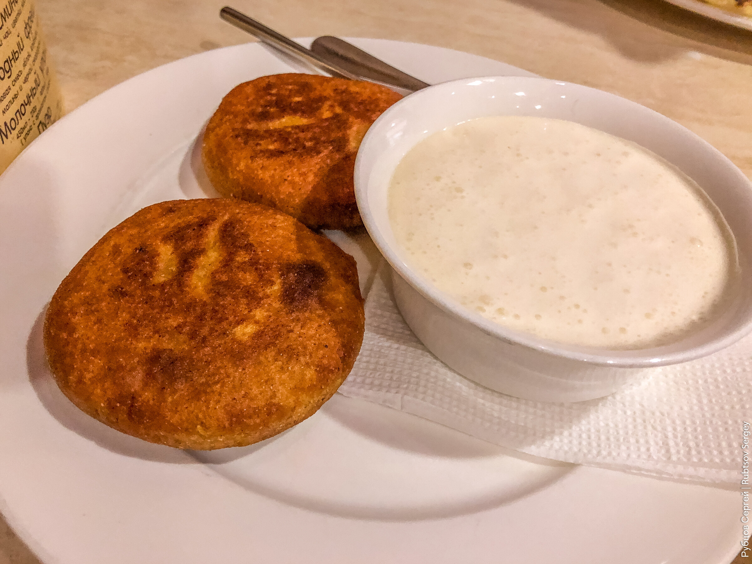 Сискал т1о-берам (тут у меня возникли проблемы в том, как это все произносить, но просто не замечаем 1 и заказываем) – тут объединено 2 блюда, которые в принципе можно заказать и отдельно. Сискал – грубо говоря, это кукурузные лепешки, а т1о-берам – это смесь из творога со сметанной. Тут я могу сказать одно, что в Грозном я понял, что кукурузная мука это не мое 😊