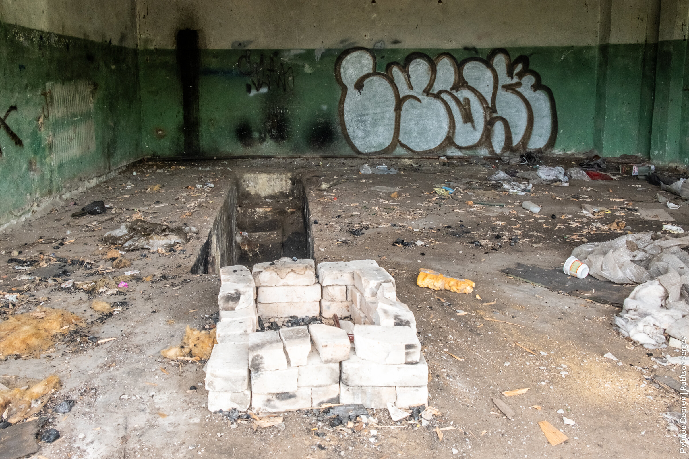 Почему-то кто-то решил, что это отличное место для барбекю и соорудил мангал из кирпичей: