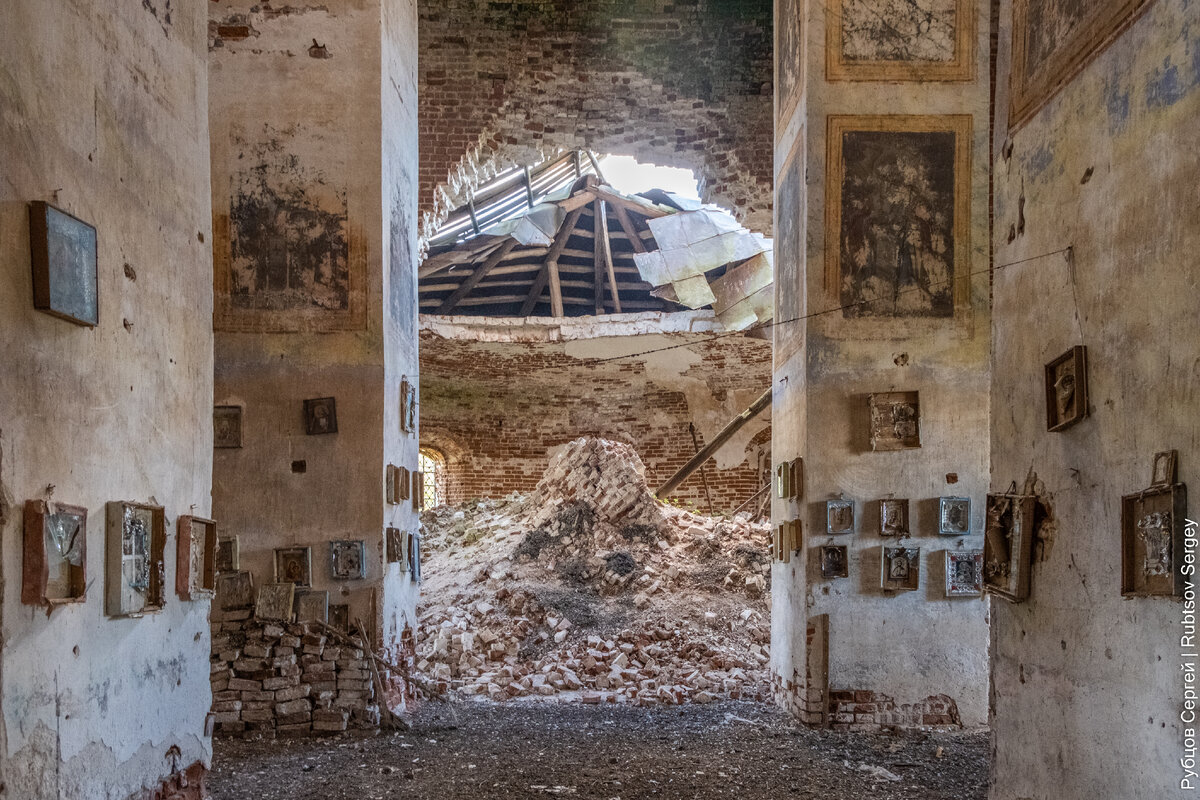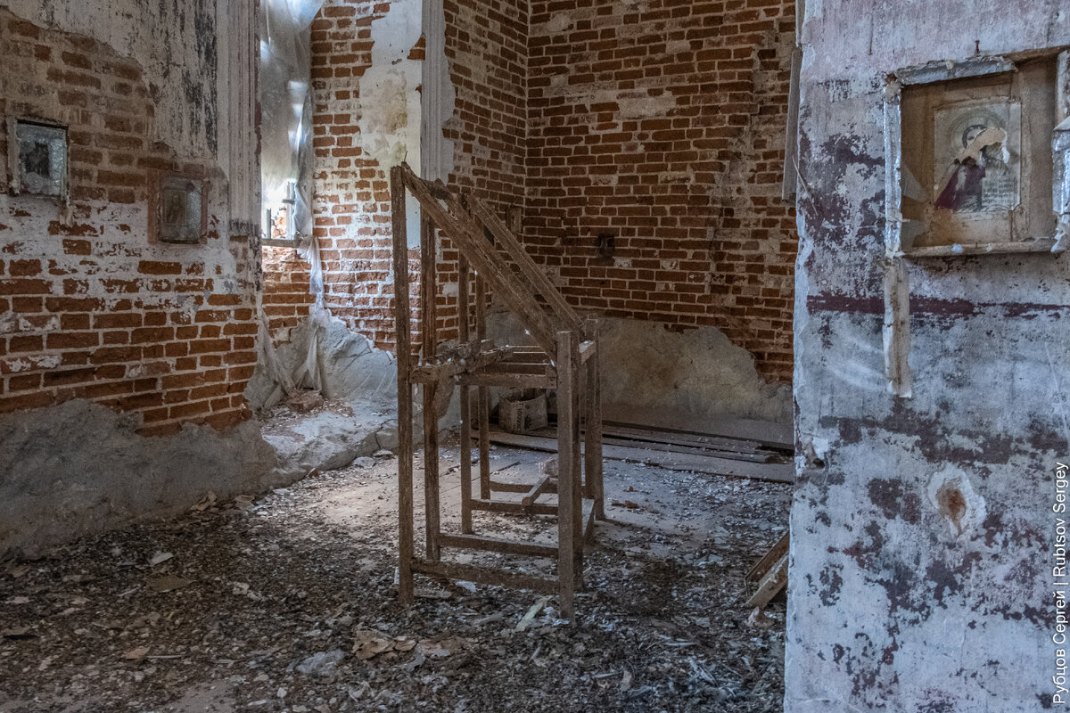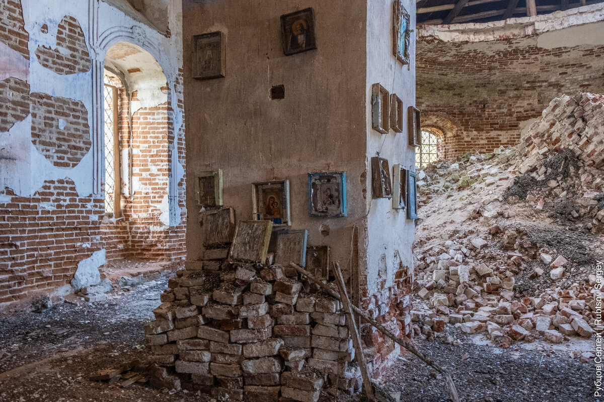 Сразу бросается в глаза обрушенная апсида: