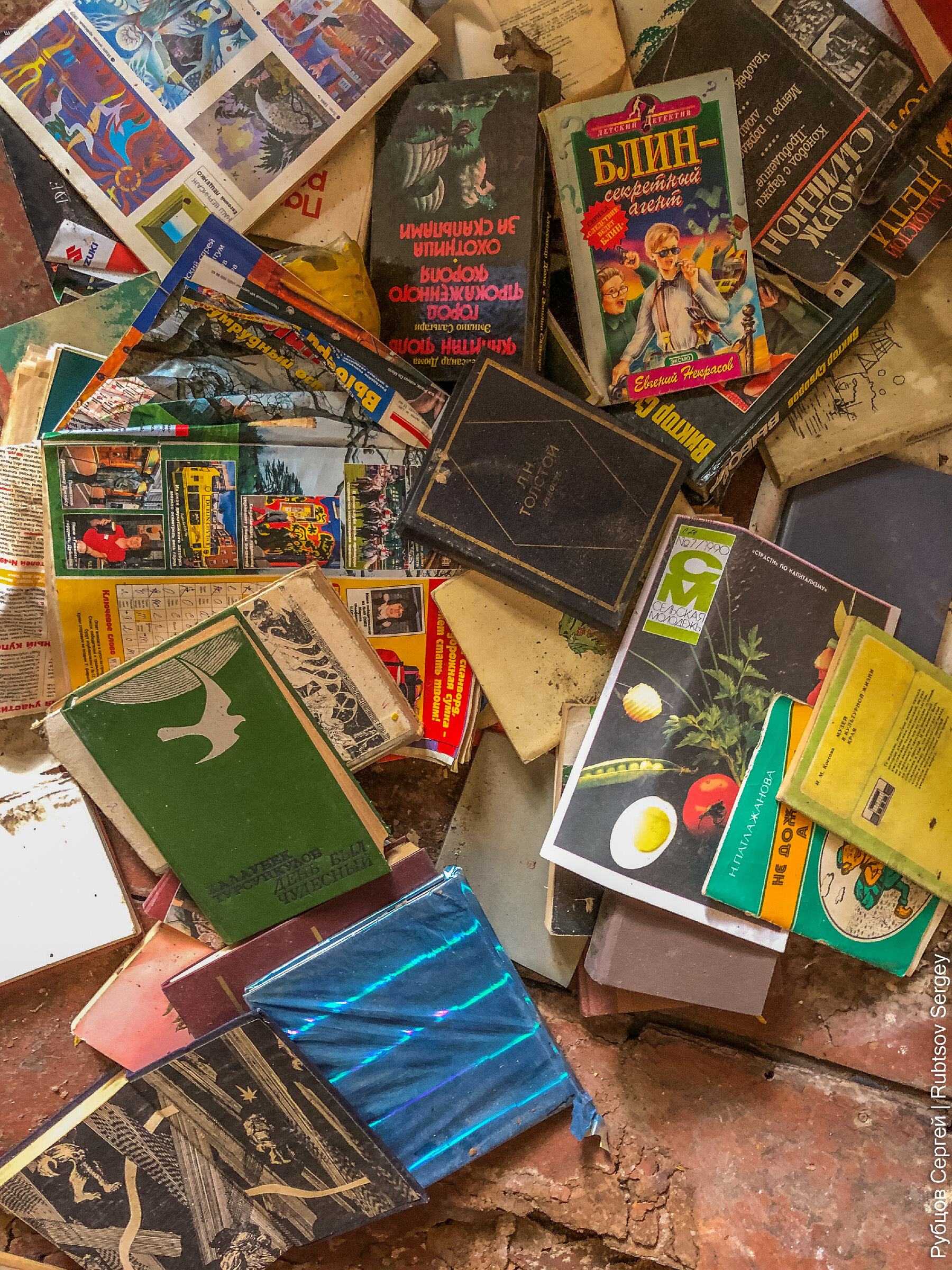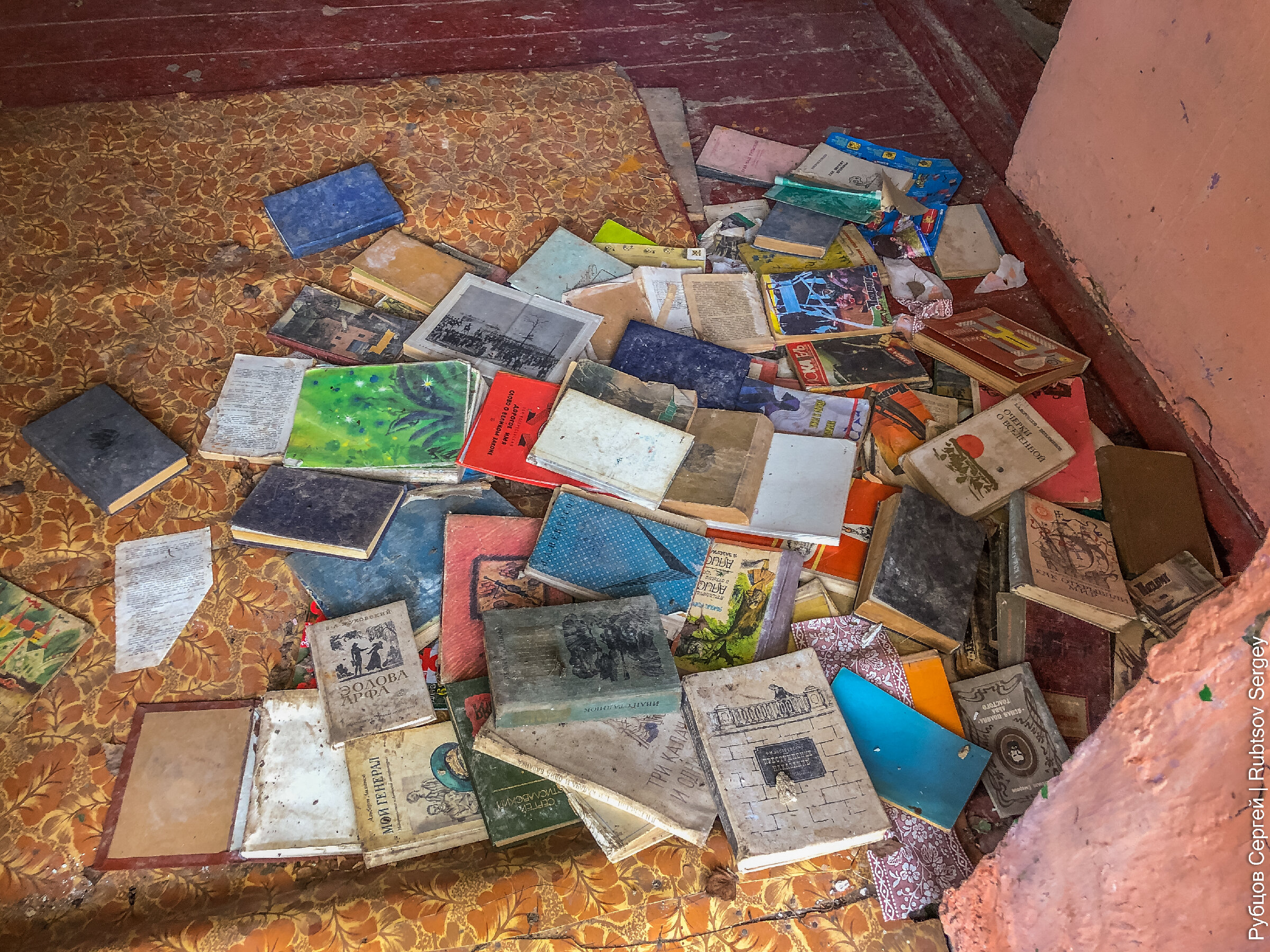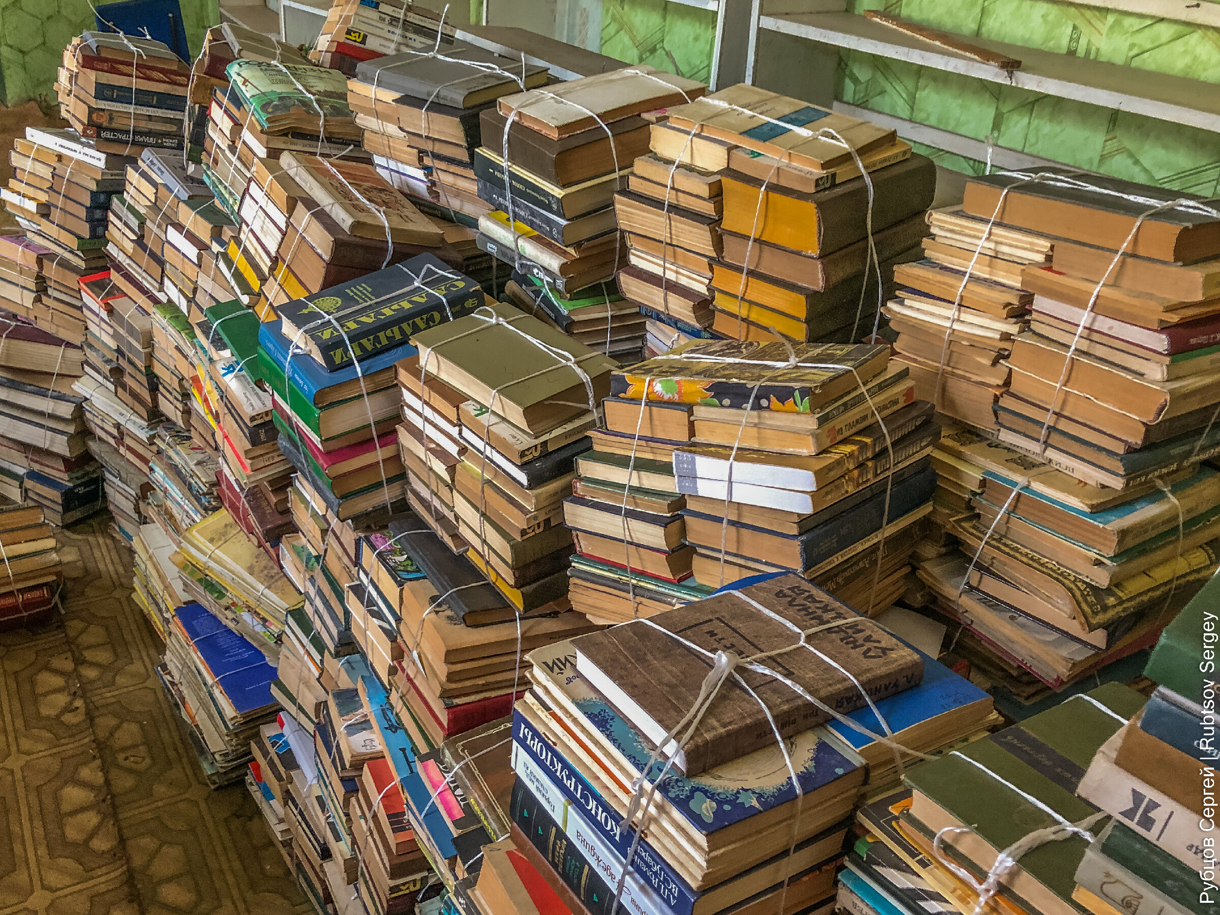 За одной из дверей, которая казалась самой закрытой и не приступной, но поддавшейся от небольшого усилия, оказалась местная библиотека, которую кто-то аккуратно упаковал для транспортировки, но так и не вывез.