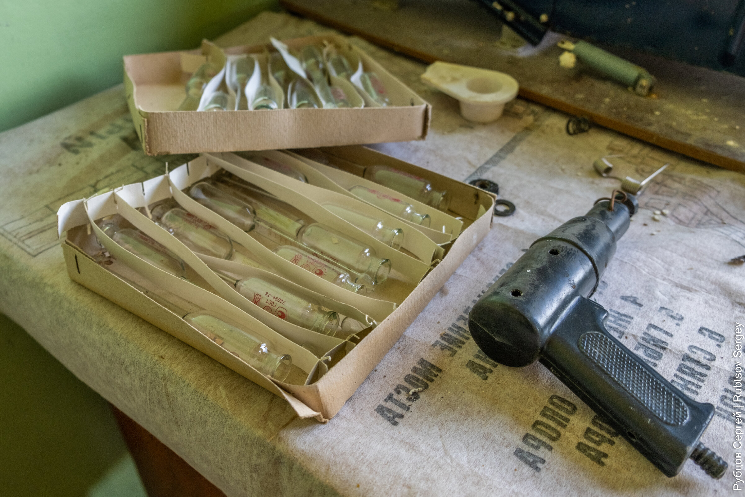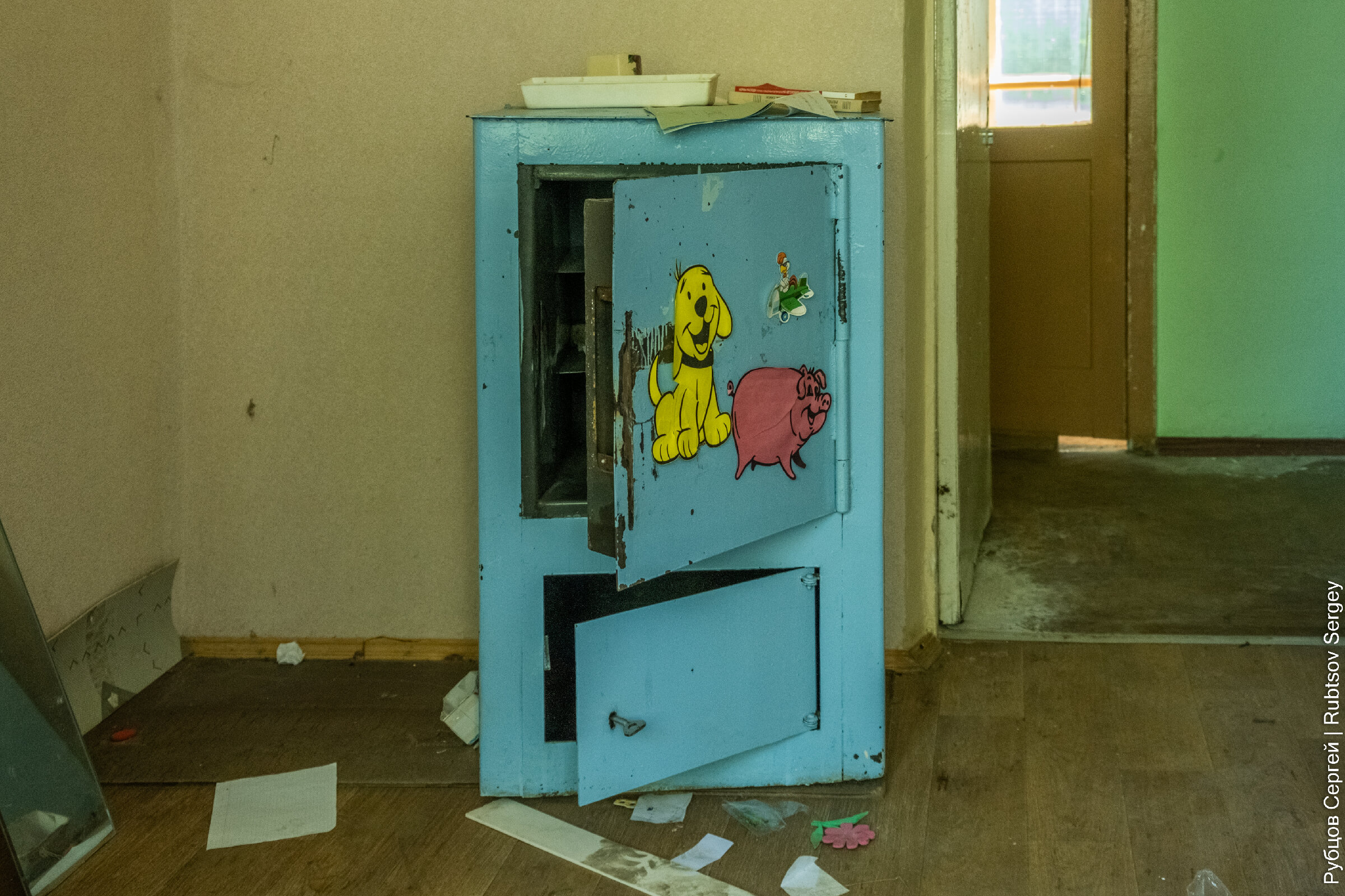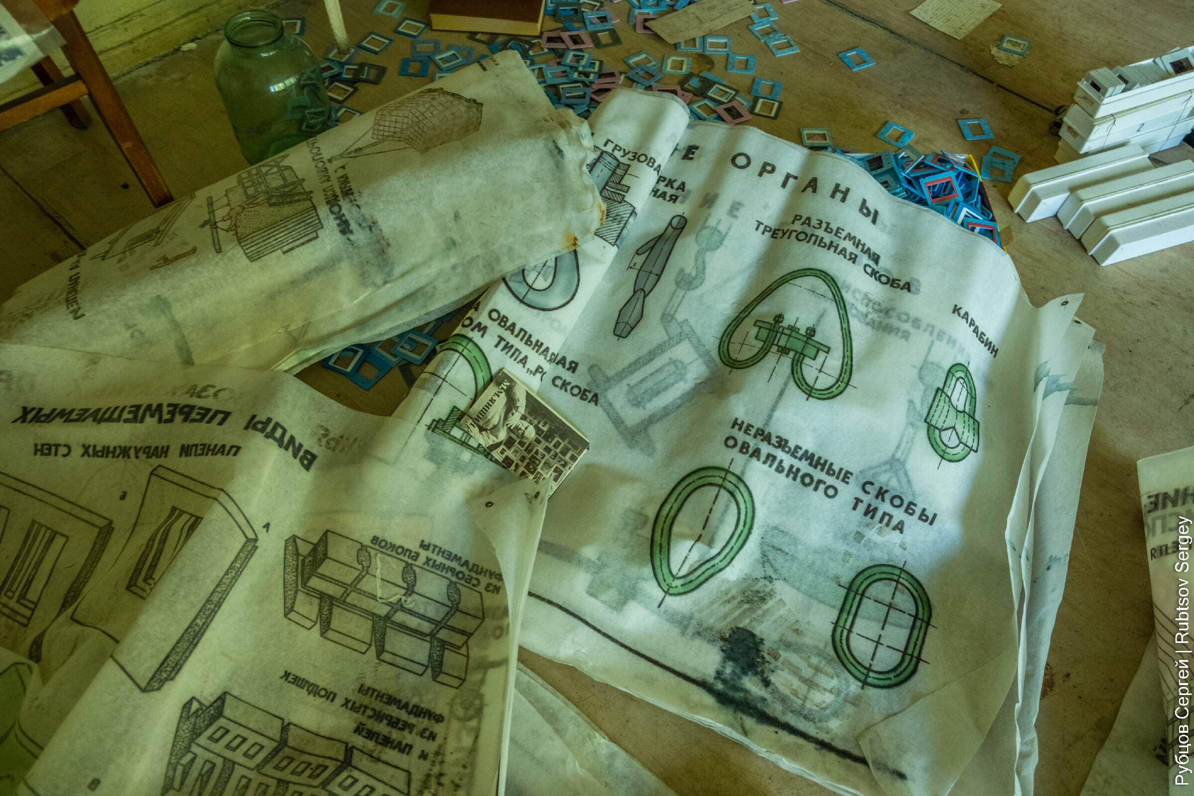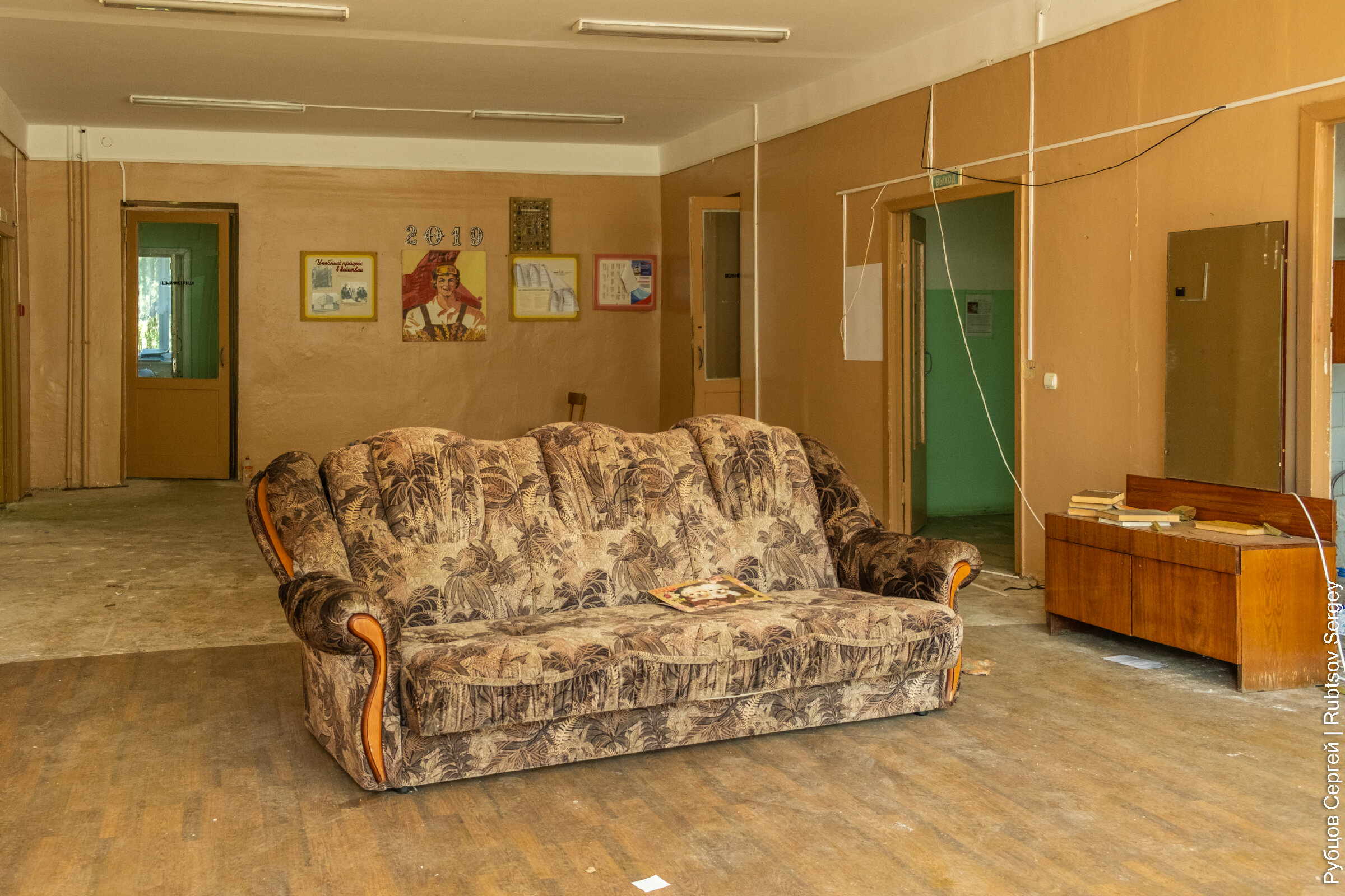 В здании еще сохранилось множество учебных пособий и никем не тронутых вещей, хотя видно, что постепенно все ломается и разворовывается.