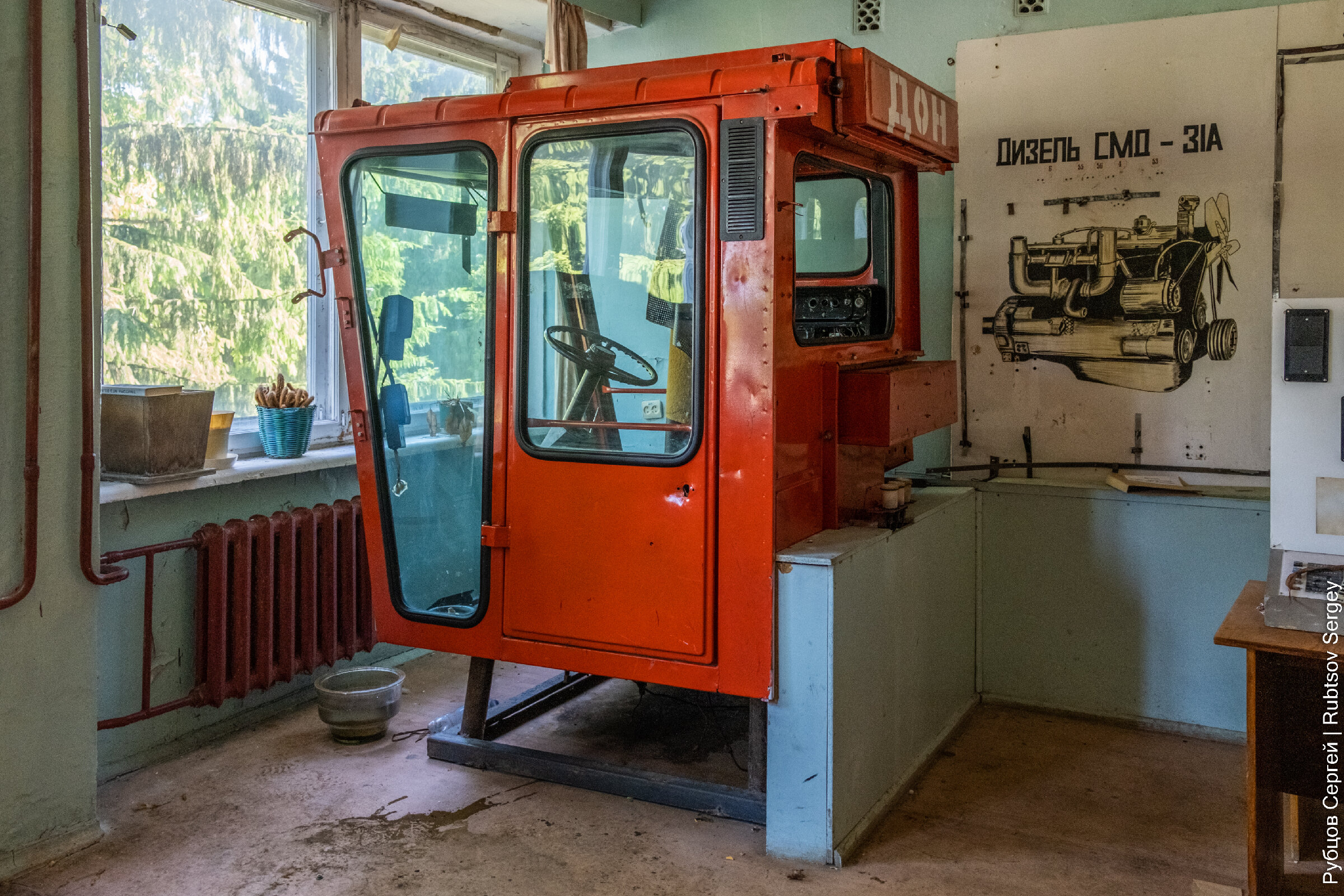 На втором этаже находится главный и самый интересный объект данного места – кабина от зерноуборочного комбайна «Дон», именно ради нее все так и стремятся попасть в это место, в том числе и я.