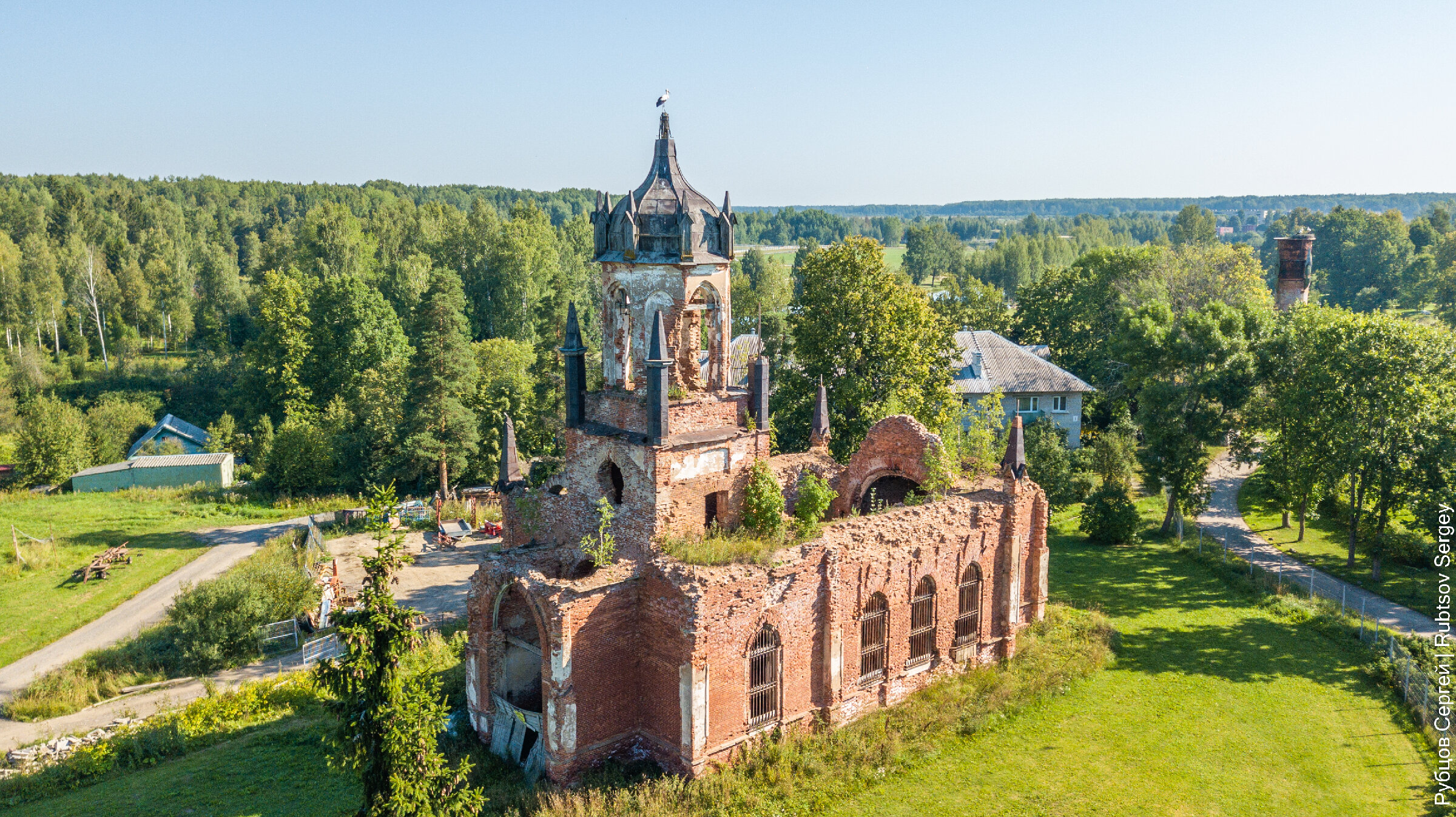 Недалеко от Санкт-Петербурга находится усадьба Марьино — родовое имение Строгановых-Голицыных. После революции она одной из первых была объявлена музеем, сейчас, судя информации в сети, там находится профилакторий какого-то местного предприятия. Поэтому меня немного удивило, что за забором, огораживающим всю сохранившуюся красоту, стоит никому не нужный заброшенный храм.
