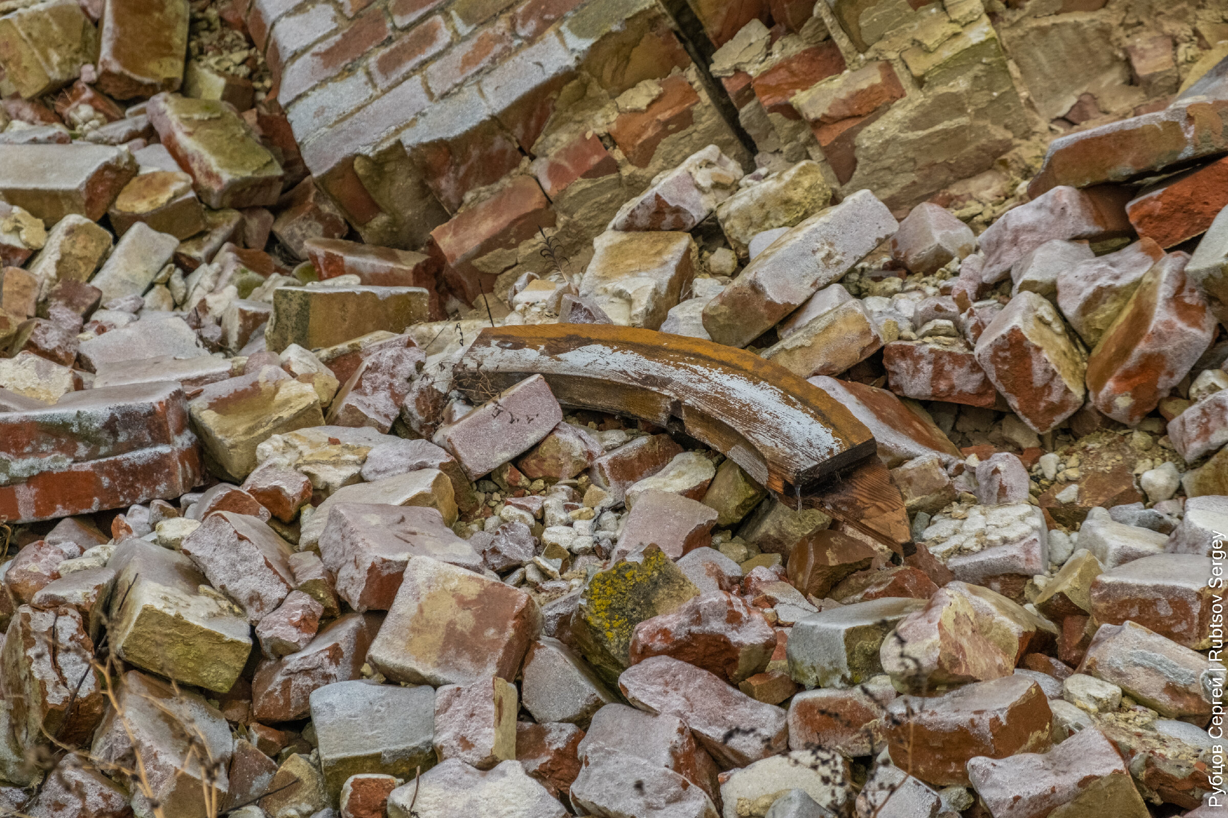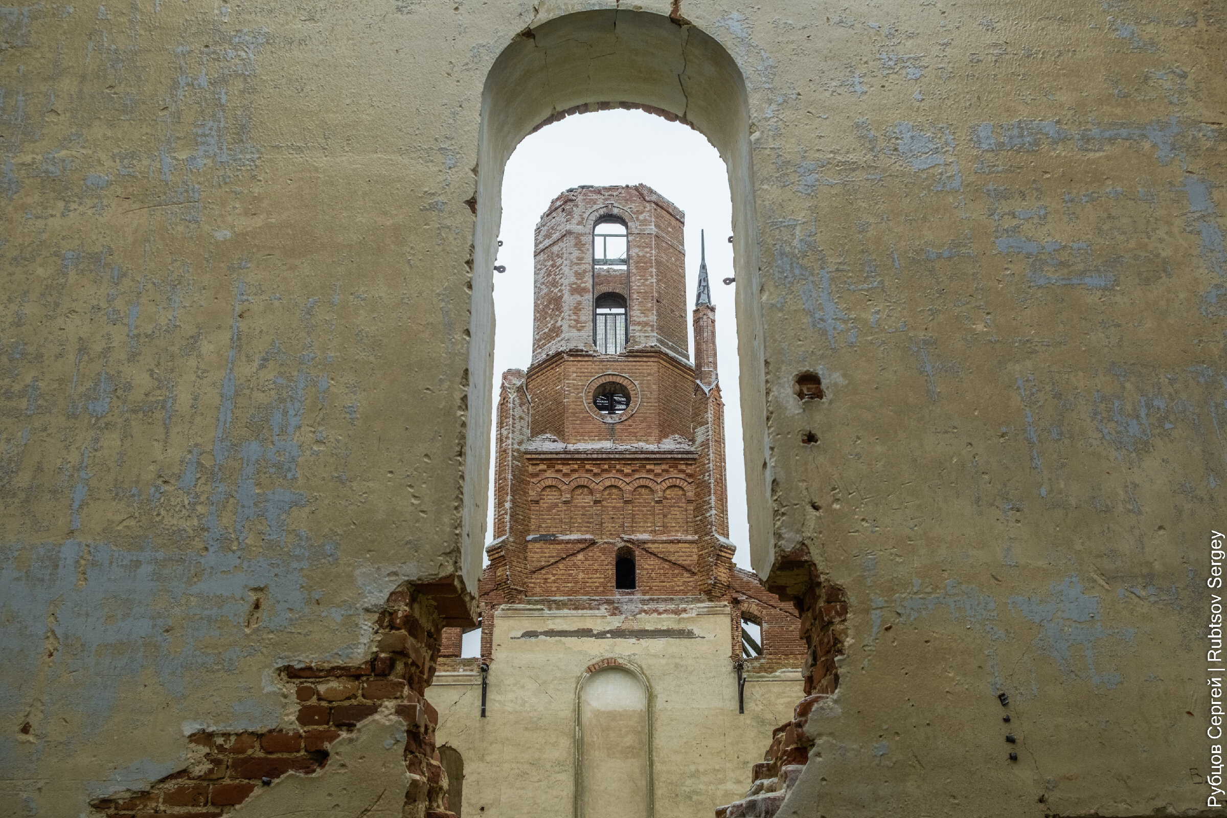 Внутри ничего не сохранилось, поэтому нам остается лишь любоваться формой и непривычным «изгибом» стен.
