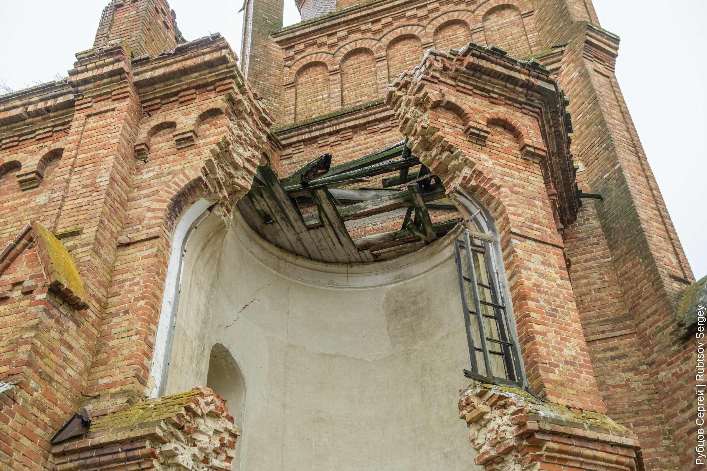 Кроме крыши обрушилась и часть стены у колокольни.